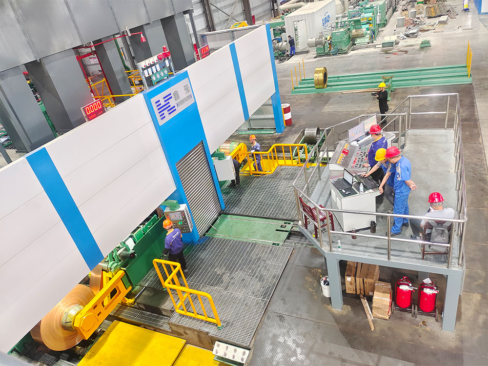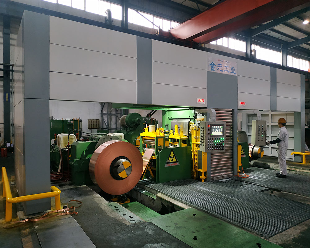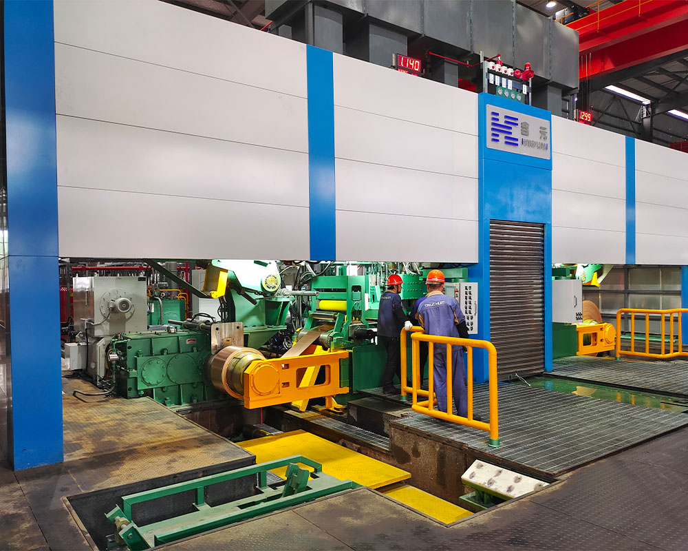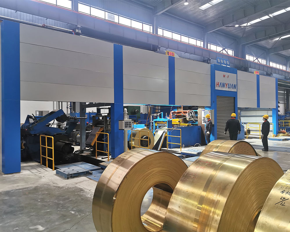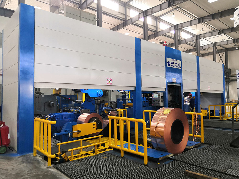 Four-roll hydraulic intermediate-to-finishing rolling mill: This unit is specifically engineered for the reversible cold rolling of annealed copper and copper alloys, with the subsequent coiling of the processed material into finished coil products.